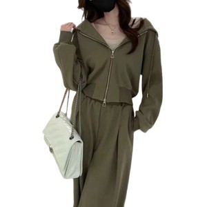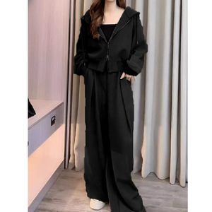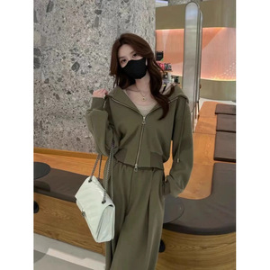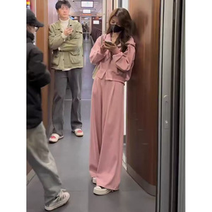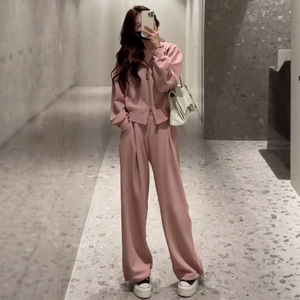 2025新款粉色韩风chic秋季套装女装显瘦宽松连帽时尚运动休闲服