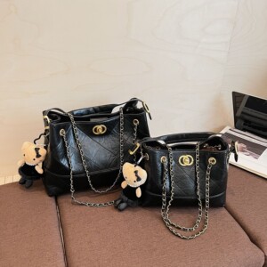 轻奢复古麂皮绒手提包锁扣菱格复古链条跨境潮流绣线大容量斜挎包