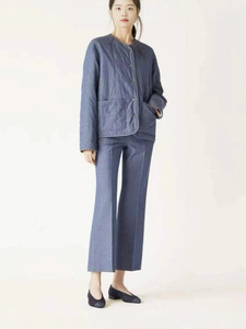25秋冬新款L@P进口锋线方格绗棉牛仔圆领单排口长袖保暖棉衣