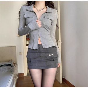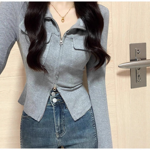 辣妹POLO领打底衫女春秋2025设计感小众修身别致短款长袖上衣