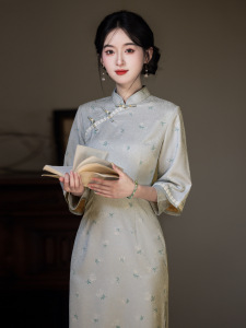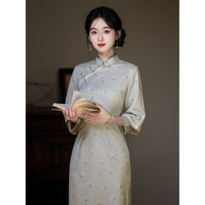 国风新中式长款改良长袖旗袍秋季2025新款年轻款少女复古修身收腰