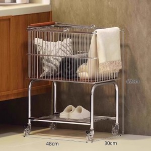 中古风收纳小推车置物架家用脏衣篮卫生间浴室衣服收纳筐洗衣篮子