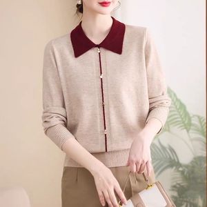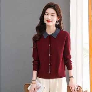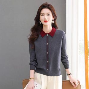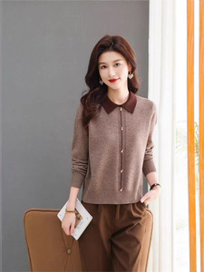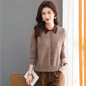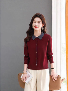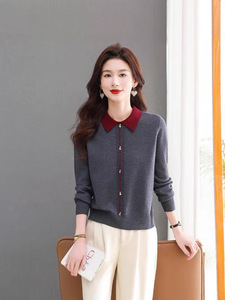 羊绒女打底衫2025新款春秋翻领针织衫毛衣女宽松加厚套头内搭上衣