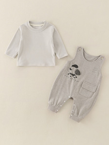 婴幼儿秋季套装2025年新款a类卡通韩版男宝可爱背带裤两件套套装