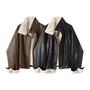 加绒皮衣外套女感小个子2025年新款冬季宽松短款PU皮夹克黑色