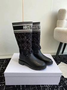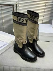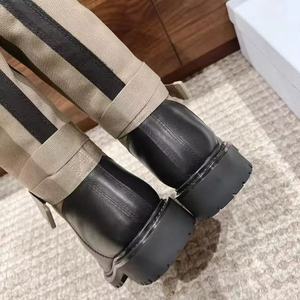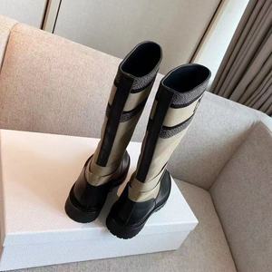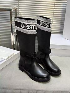 2025秋款骑士靴长筒靴D家 字母长靴女真皮马丁中筒靴粗跟皮绒增高
