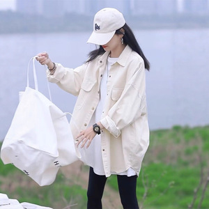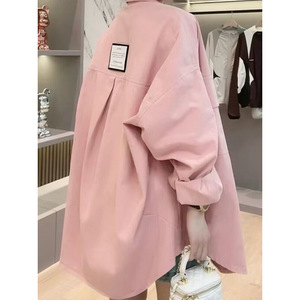 2025新款复古港风韩版衬衫外套女薄款春秋休闲宽松显瘦中长款上衣
