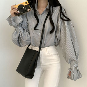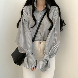 韩国chic设计感小众细条纹宽松衬衫女2025春秋款简约内搭长袖上衣