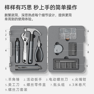 家庭便携手动工具套装工具箱日常家用维修安装简约风五金工具组合