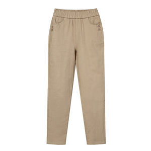 全棉纯棉工装裤女春秋季宽松大码中年休闲裤高腰外穿直筒九分裤子