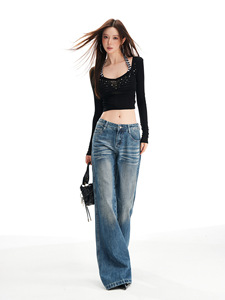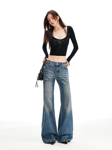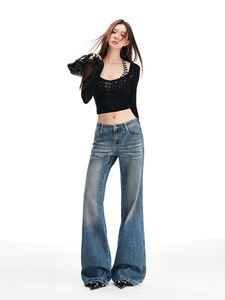 低腰微喇叭牛仔裤女2025年秋季新款美式设计感宽松直筒阔腿喇叭裤