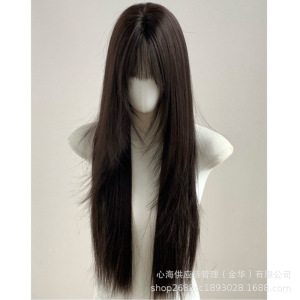 日韩黑茶色假发女长直发仿真头皮自然蓬松刘海精修全头套高温丝
