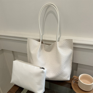 2025秋季新款休闲纯色质感编织纹压痕大容量子母复古单肩手提女士
