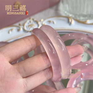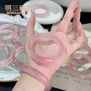 高冰种樱花粉玉髓手镯扁条冰透粉玛瑙玉镯粉色细圆条美人镯子直播