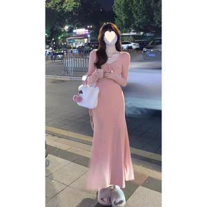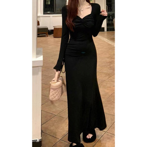 2025秋冬内搭连衣裙新款法式收腰赫本风休闲长袖打底修身显瘦长