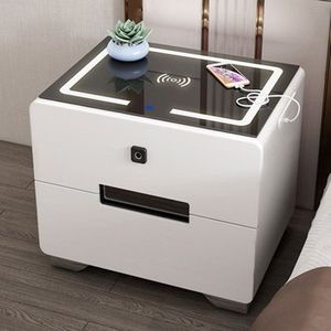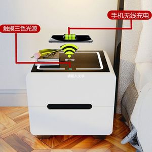 轻奢床头柜智能带灯简约现代卧室网红床边小柜白色烤漆简易储物柜