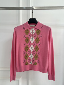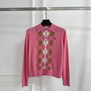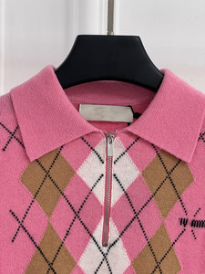 南油miu家25早秋新款学院风菱格半拉链Polo领长袖针织衫显瘦上衣