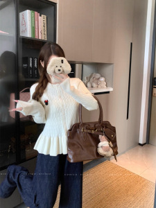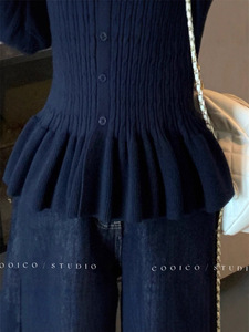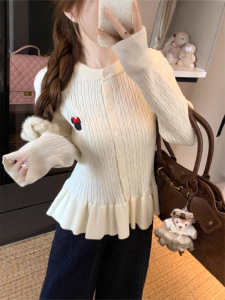 大码秋冬胖mm甜美芭蕾风针织麻花开衫毛衣收腰裙摆外套