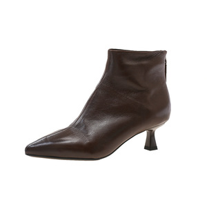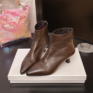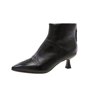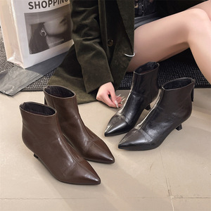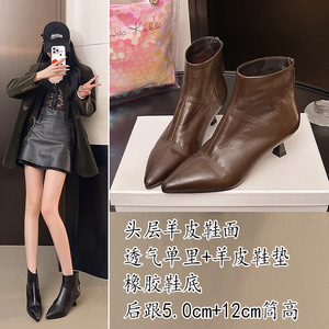 头层羊皮尖头短靴女2025秋季新款单里瘦瘦靴后拉链女靴一件代发