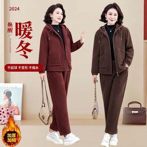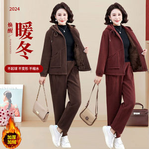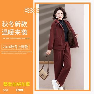 秋装妈妈新款外套时尚洋气套装中年中老年秋冬加绒加厚休闲两件套