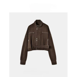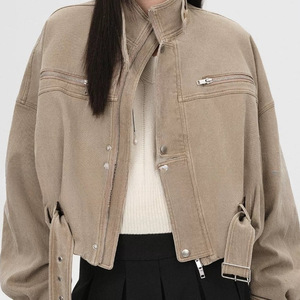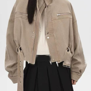 美式特调 复古工装风宽松短款机车夹克外套女2025春秋季新款丙纶