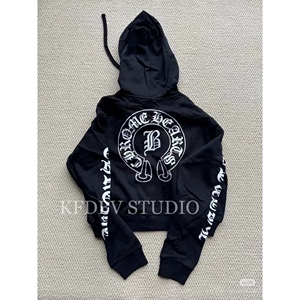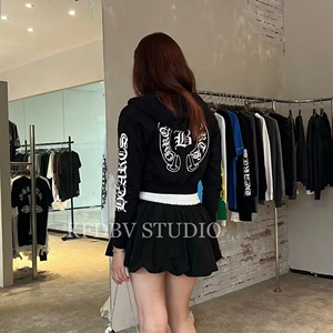 25ss秋冬新款梵文字母藤花经典黑白两色刺绣立体短款拉链连帽卫衣