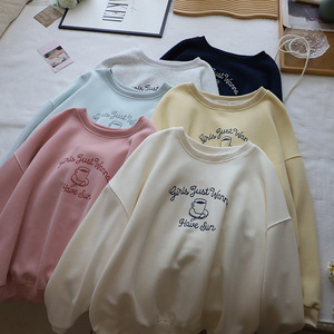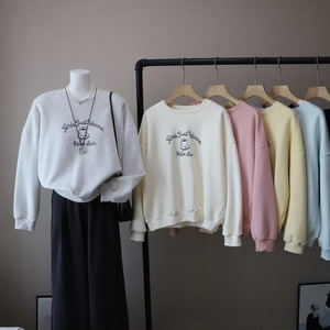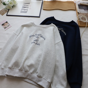 [比正]2025秋冬新款韩版圆领字母印花宽松休闲套头百搭卫衣女4882