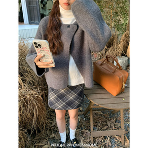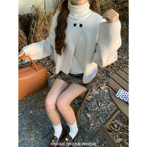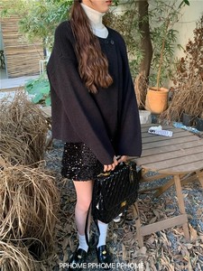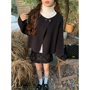 PPHOME***~中式大小姐 复古中式圆领开衫毛衣叠穿红色毛衣外套女