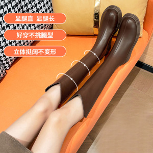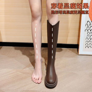 现货秒发~厚底高度4.5厘米高骑士靴长筒瘦瘦靴小个子增高加绒防滑