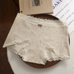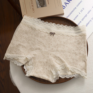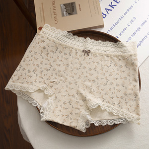 女士纯棉内裤女中腰平角裤全棉10A抗菌加长裆安全裤二合一蕾丝边