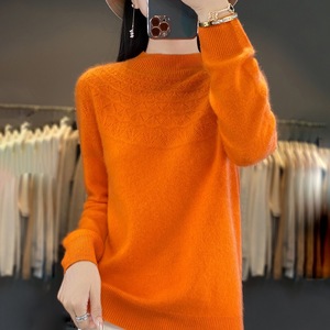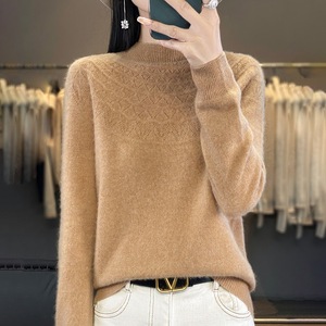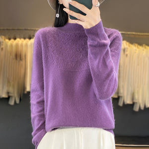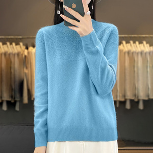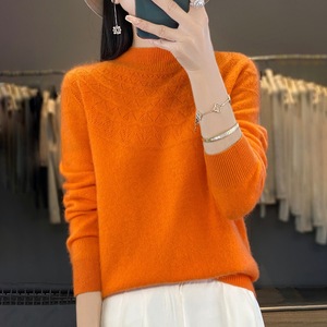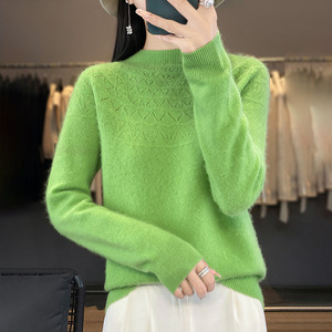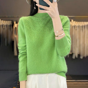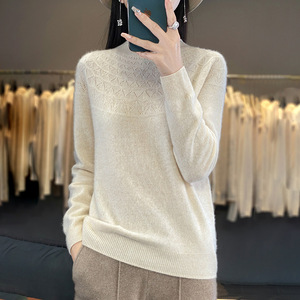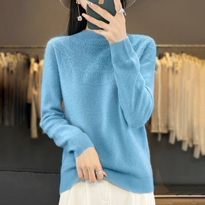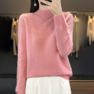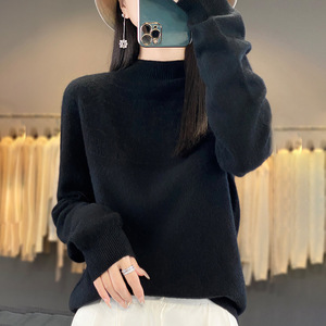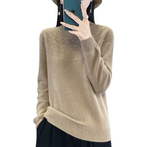 半高领无缝针织衫毛衣女秋冬宽松菱形长袖打底衫上衣休闲百搭毛衣