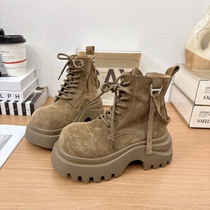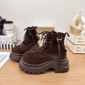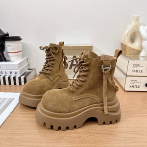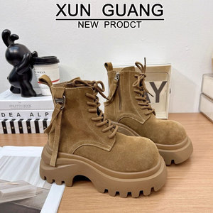 英伦风厚底马丁靴女2025年秋季新款小个子增高大头机车真皮短靴子