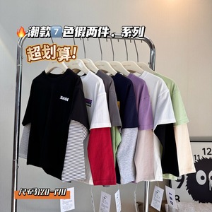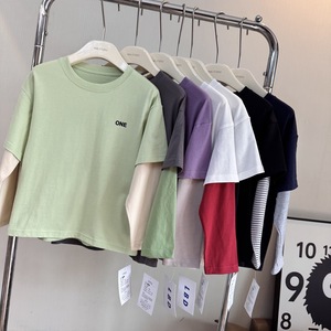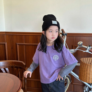 男女童长袖T恤秋2025韩版中大童大印花假两件儿童秋季潮卡通印花