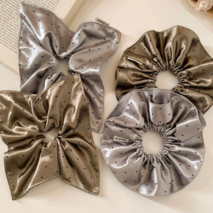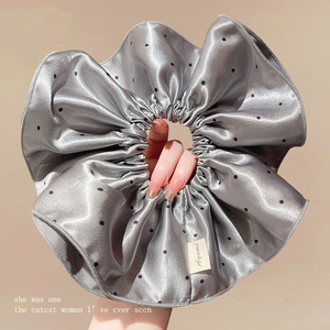 韩系双层褶皱波点大肠发圈时尚高级感发绳简约通勤百搭方巾头花女