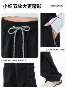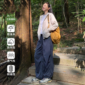 户外冲锋速干软壳新款工装裤男春秋宽松直筒运动伞兵休闲长裤女