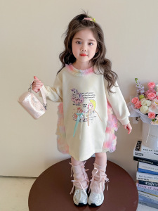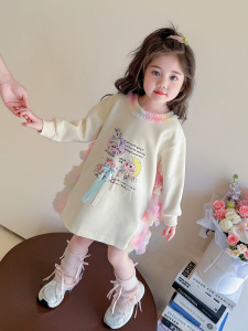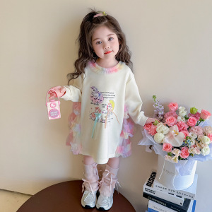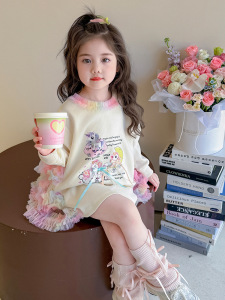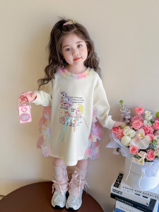 女童卫衣裙秋装2025新款儿童彩虹网纱蓬蓬裙小女孩卡通长袖连衣裙