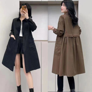 春秋季新款潮流胖人风衣加肥加大码宽松时尚高档中长款百搭女外套