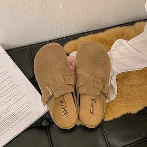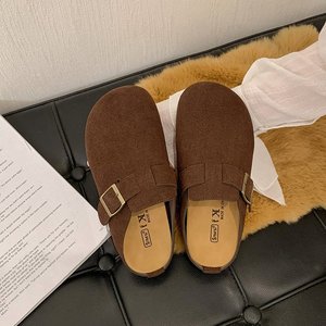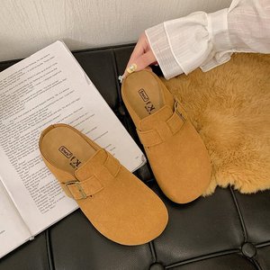 现货磨砂皮软底勃肯拖鞋女包头半拖鞋2025秋冬一脚蹬懒人拖鞋女