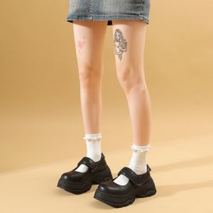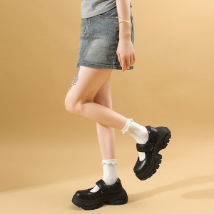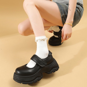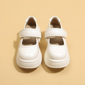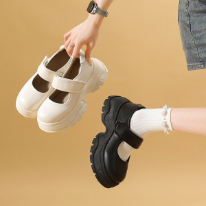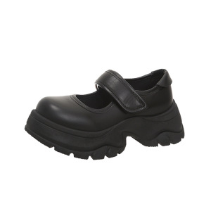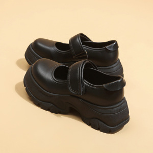软皮版~英伦风魔术贴浅口厚底玛丽珍鞋2025秋新款简约通勤小皮鞋
