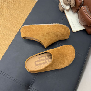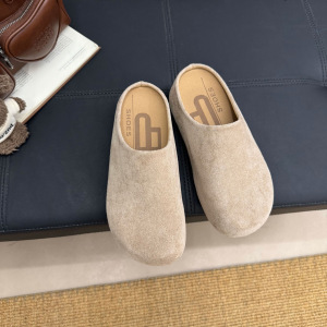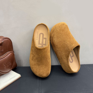 包头平底拖鞋2025新款绒面一脚蹬居家拖鞋复古休闲圆头中跟拖鞋女