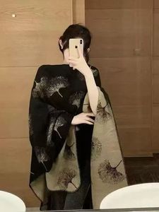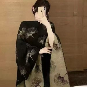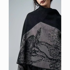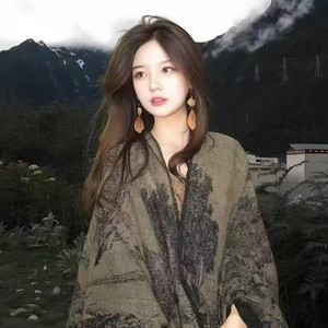 2025新款仿羊绒山水画民族风女围巾披肩抖篷披风高级感暗黑印花