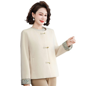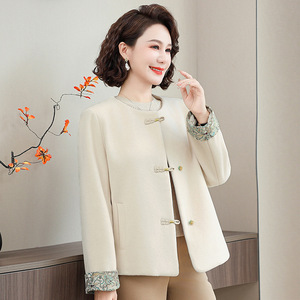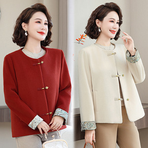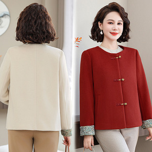 妈妈新中式外套中老年人女装呢子上衣春秋季新款国风短款开衫衣服