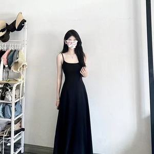 2025年新法式黑色吊带连衣裙子女夏季小个子海边度假气质显瘦长裙