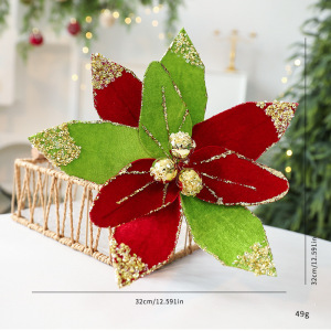 亚马逊新款绒布圣诞花摆件圣诞节场景布置仿真假花圣诞树装饰插枝