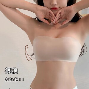 跨境外贸无痕内衣女薄款无肩带防滑美背抹胸收副乳果冻裹胸文胸罩