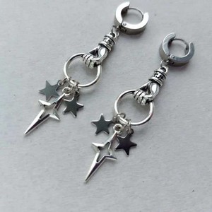 银色星星环状耳环不锈钢环耳环摇滚风哥特式Y2K哥特风前卫朋克风
