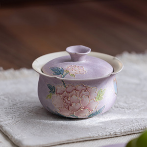 高颜值手绘立体堆雕牡丹三才盖碗陶瓷功夫茶具敬茶碗办公室泡茶