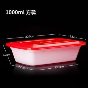 一次性餐盒打包盒白底红盖美式快餐盒一次性碗塑料饭盒汤碗加厚