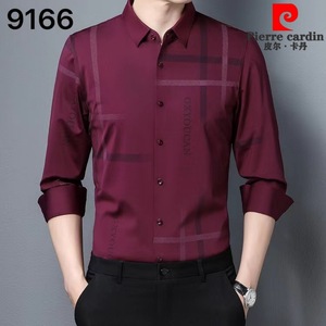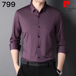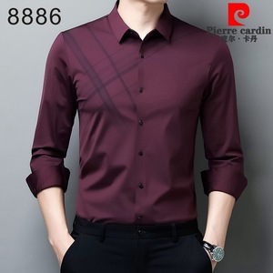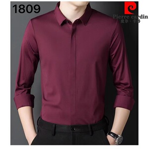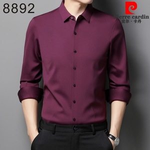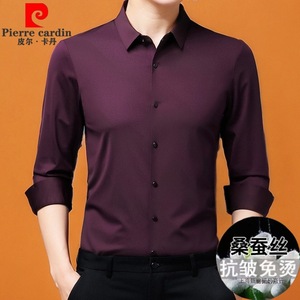 皮尔卡丹高端桑蚕丝喜公公长袖衬衫2025新款喜爸爸婚宴装平时可穿
