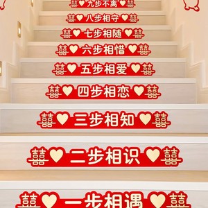 楼梯踏步贴结婚装饰男方婚礼扶手台阶喜字贴婚庆贴纸婚房布置批发